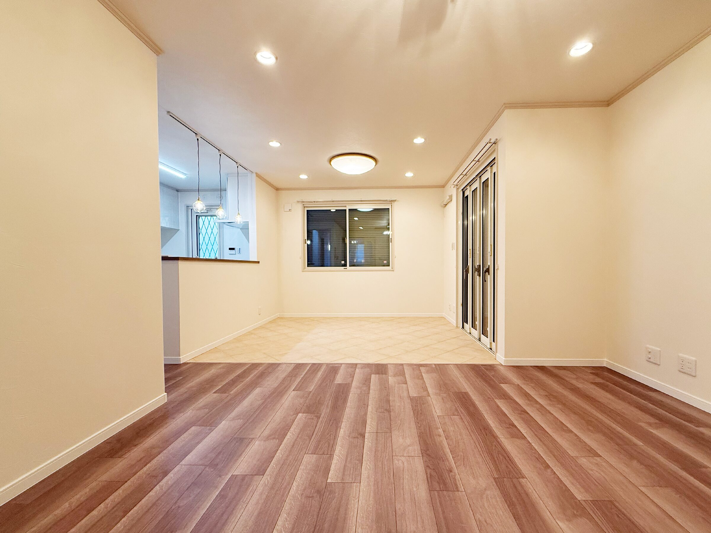 リビング・玄関の照明は施主様支給にて、やわらかい温かみのある空間に仕上がりました。