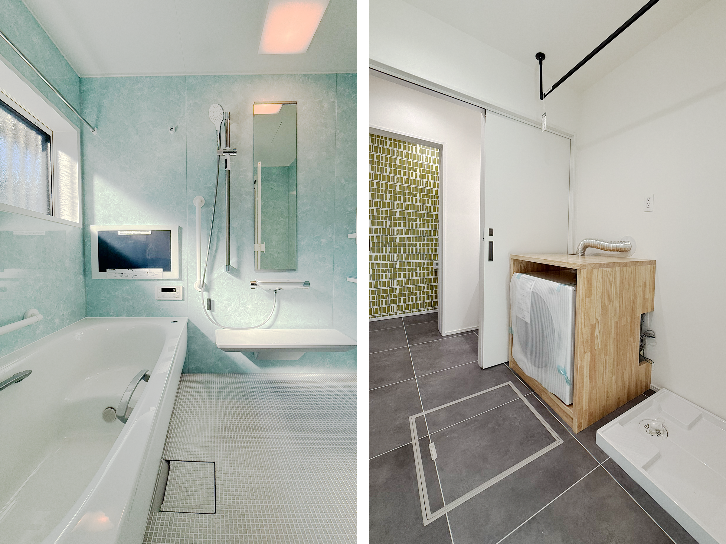 浴室は4面を爽やかで目にも心にも優しいリラクゼーション効果のあるグリーン色を取り入れ、明るくホッと落ち着ける空間を演出。