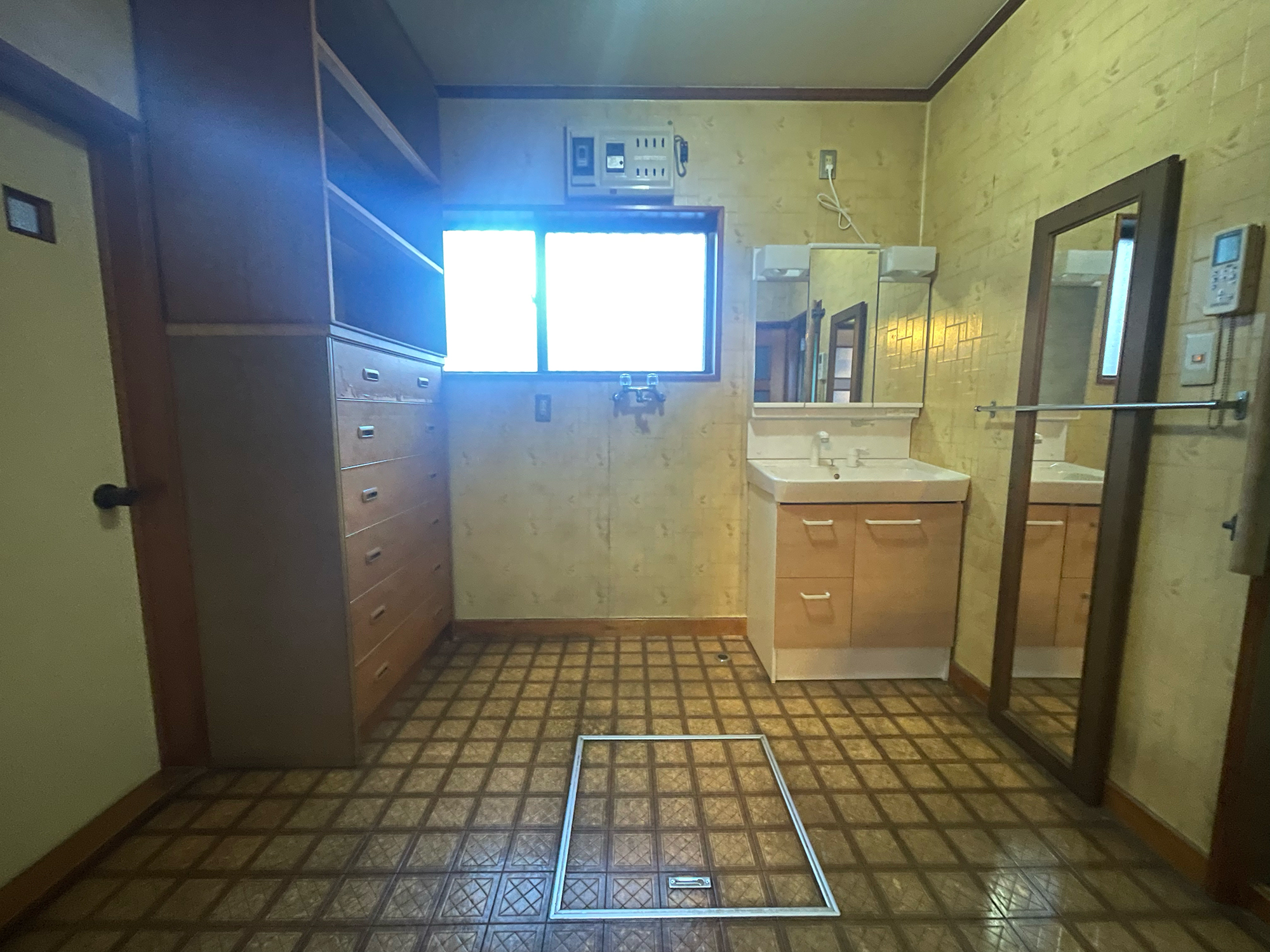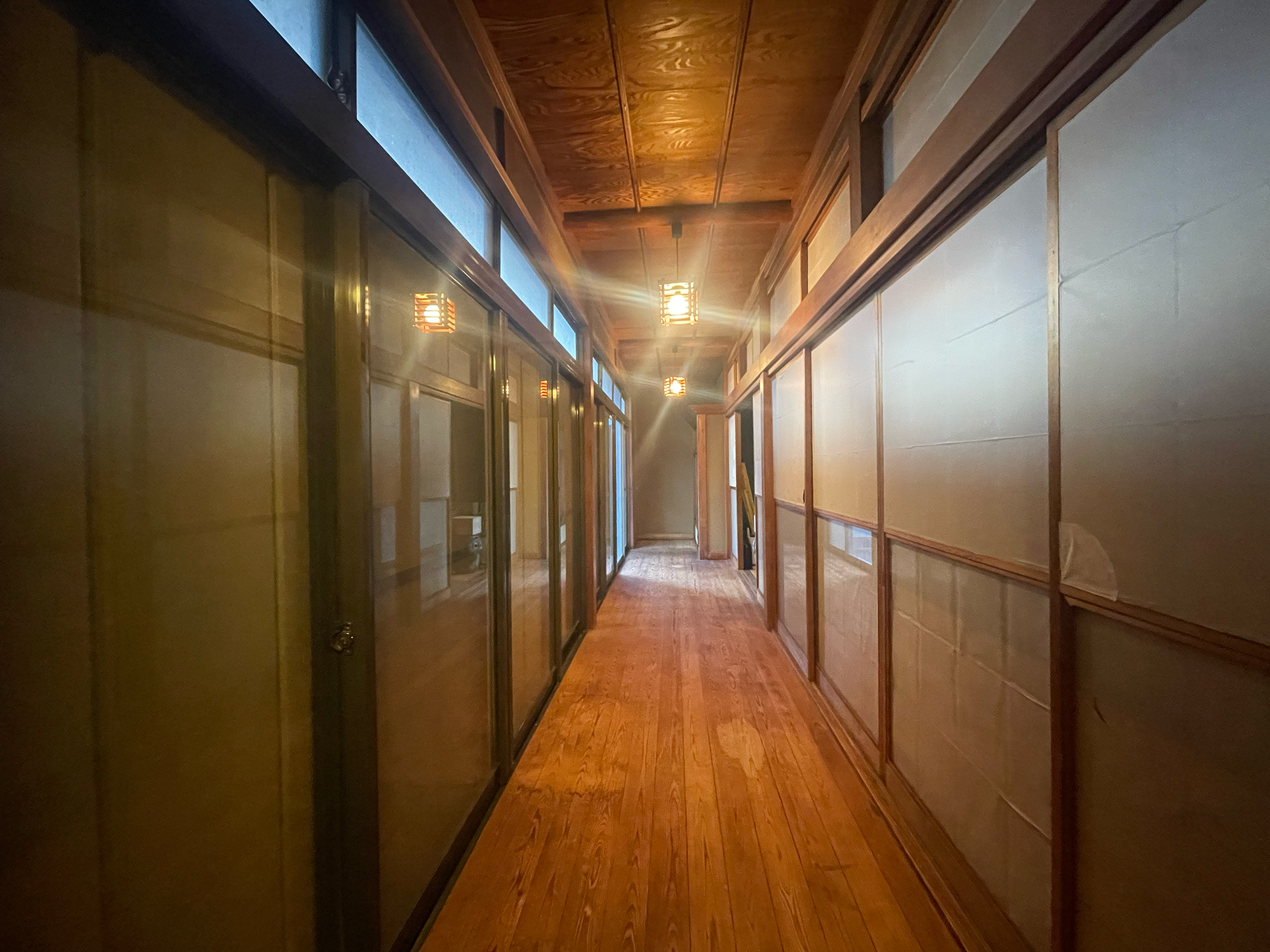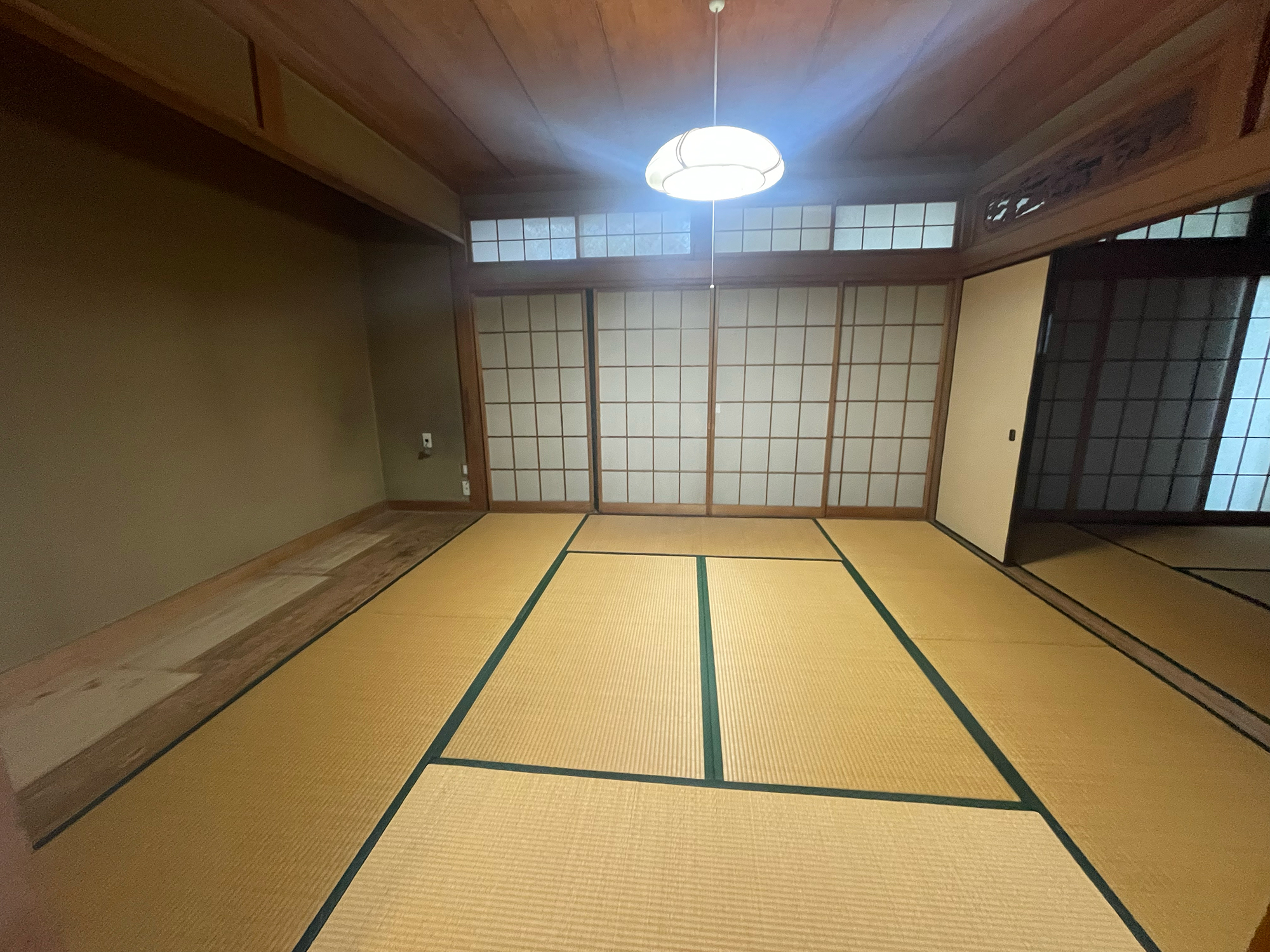 風格を感じさせる日本家屋です。老朽化が目立ち、畳の大広間や障子をはじめ1階の寒いタイル張りの浴室など現在の生活様式にマッチしていません。けれど所々に年代を重ねた良き趣があり、玄関ホールの磨き上げられた年代ものの床材にはウットリ!庭へとアプローチする広縁も受け継ぎたい空間だと感じました。